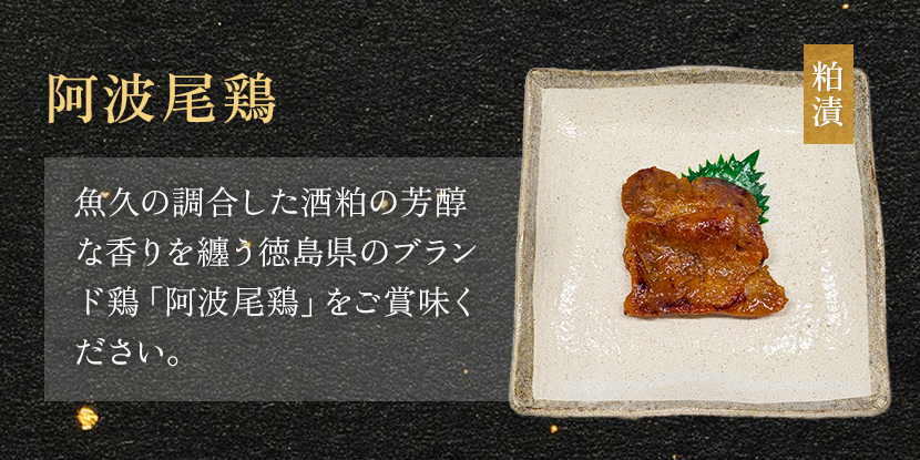 ブランド鶏「阿波尾鶏」に合わせて調合した酒粕で漬け込んだ「阿波尾鶏粕漬」