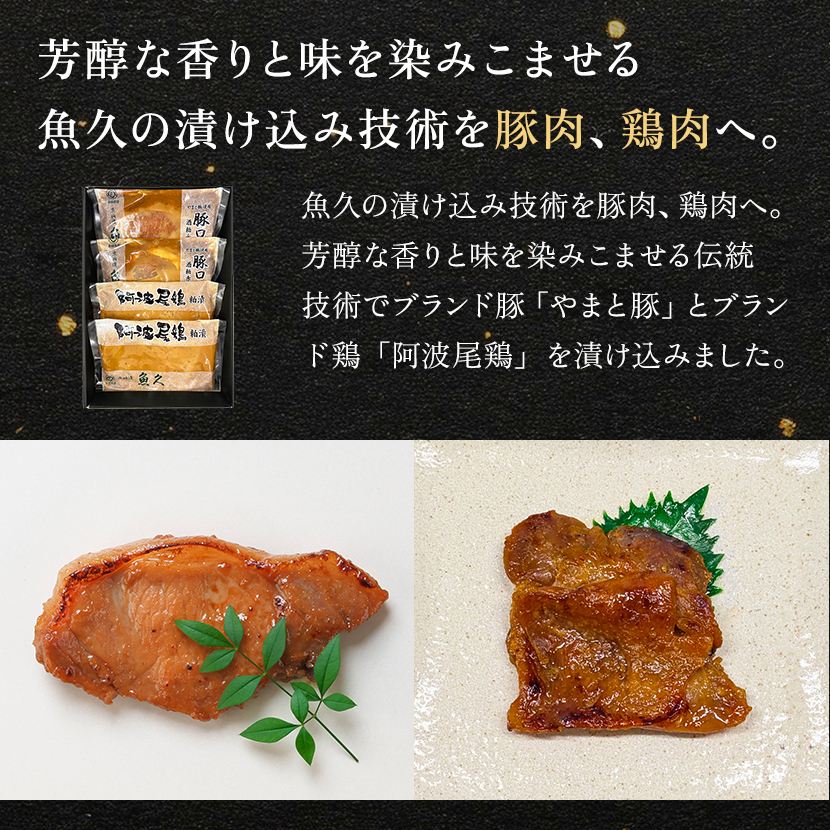 魚久の「豚」と「鶏」を各2枚ずつ、ご進物用お箱詰めにてご用意しました。