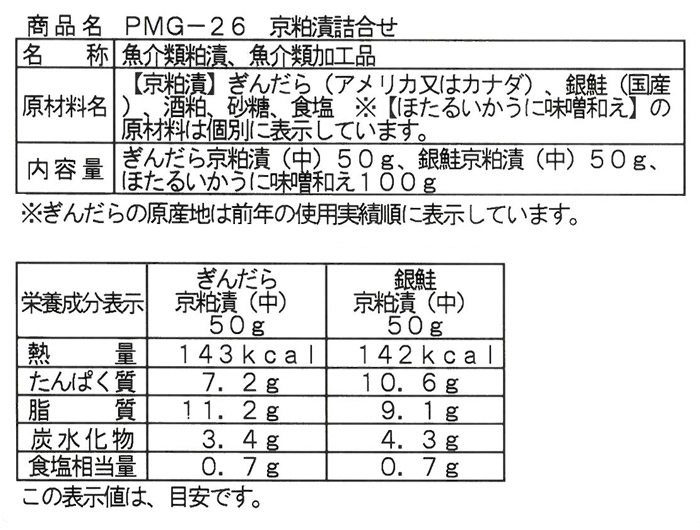 特定原材料に準ずるもの:さけ・いか・さば・大豆・ゼラチン